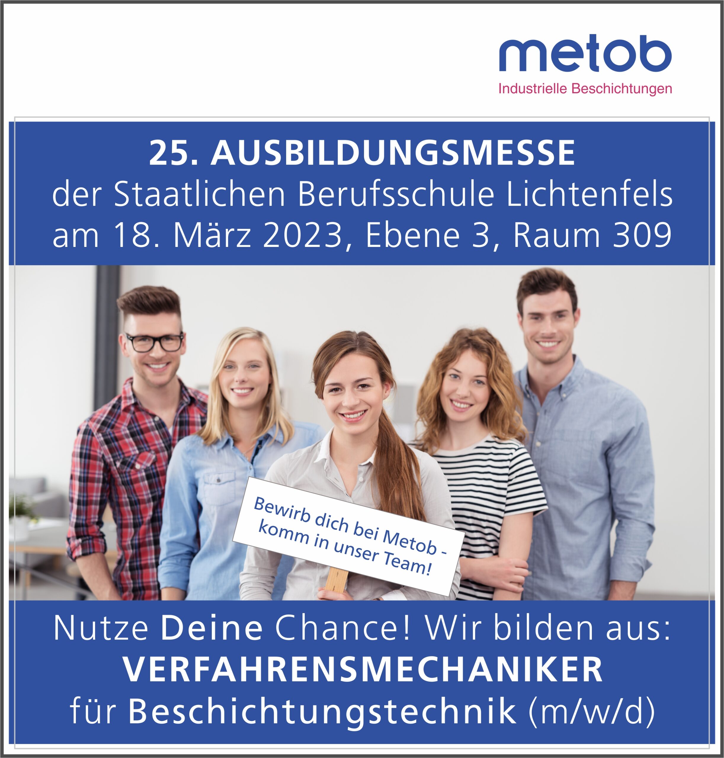Am 18. März 2023 wird die 25. Ausbildungsmesse der Staatlichen Berufsschule Lichtenfels stattfinden. Die Messe ist für alle Interessierten von 09.00 bis 14.00 Uhr geöffnet.Read More