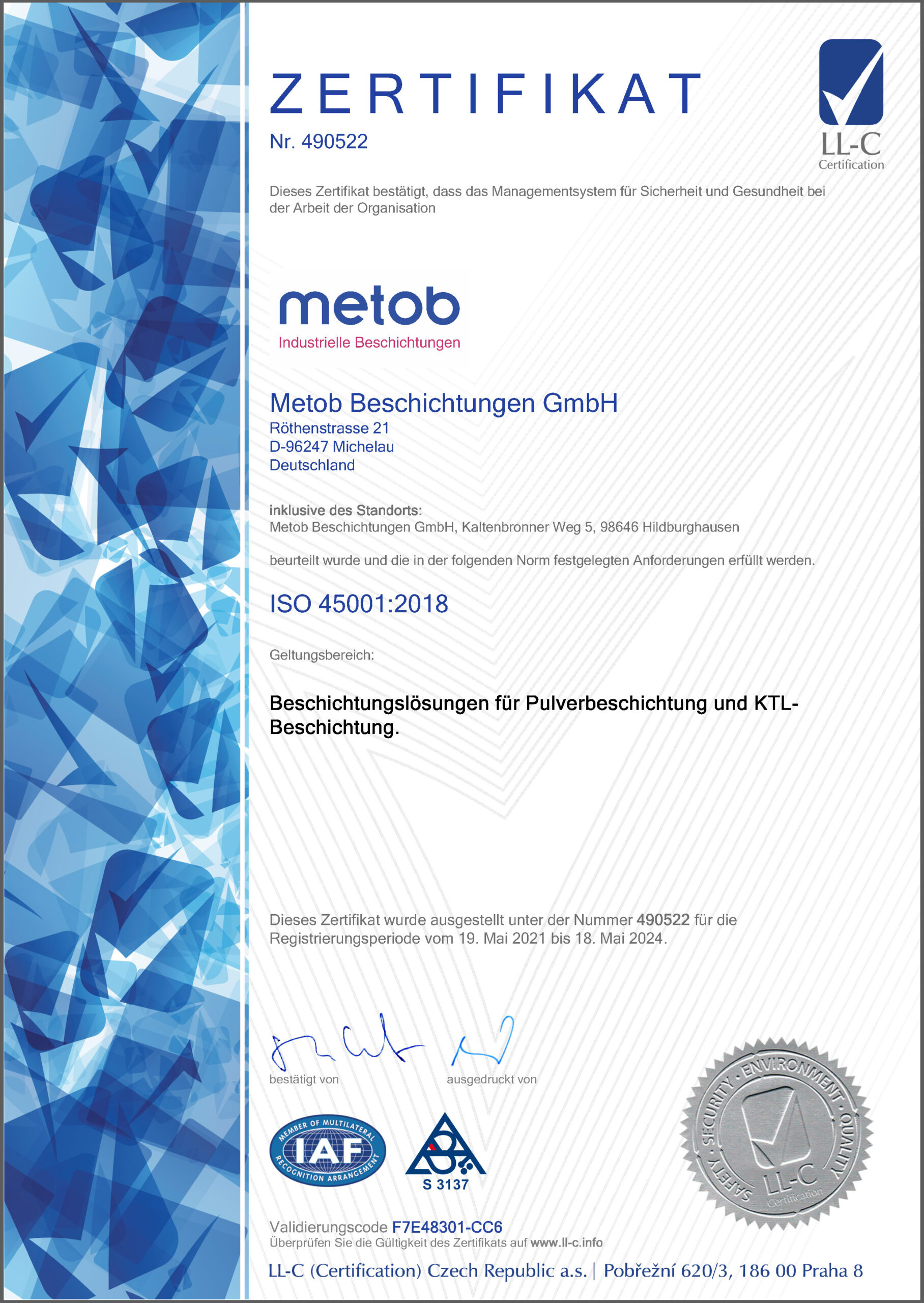 Sicherheit und Gesundheit bei der Arbeit haben neben Wertschätzung und Anerkennung der Leistungen der Mitarbeiter der Metob Beschichtungen GmbH einen wichtigen Platz in unserer Unternehmensstrategie und in unserer Unternehmenspolitik.Read More
