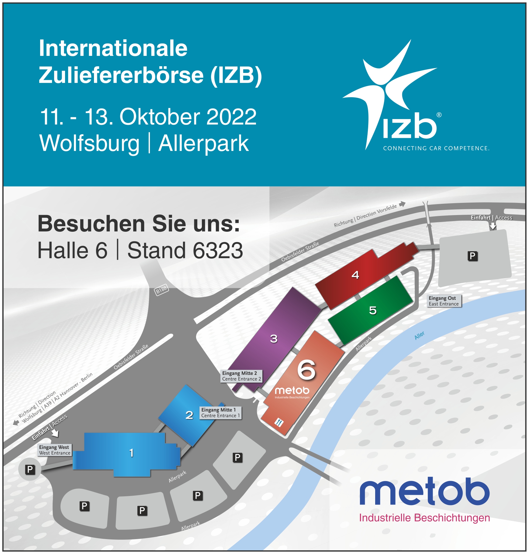 Die letzte Internationale Zuliefererbörse (IZB) liegt bereits vier Jahre zurück. Wir freuen uns, dass sich Metob in der Zeit vom 11. bis 13. Oktober 2022 wieder als Aussteller in diesem bewährten Format präsentieren kann. Gerne werden wir Sie über die erweiterten Möglichkeiten bei der Beschichtung von Aluminium-Komponenten informieren. Wir freuen uns auf Ihren Besuch in...Read More