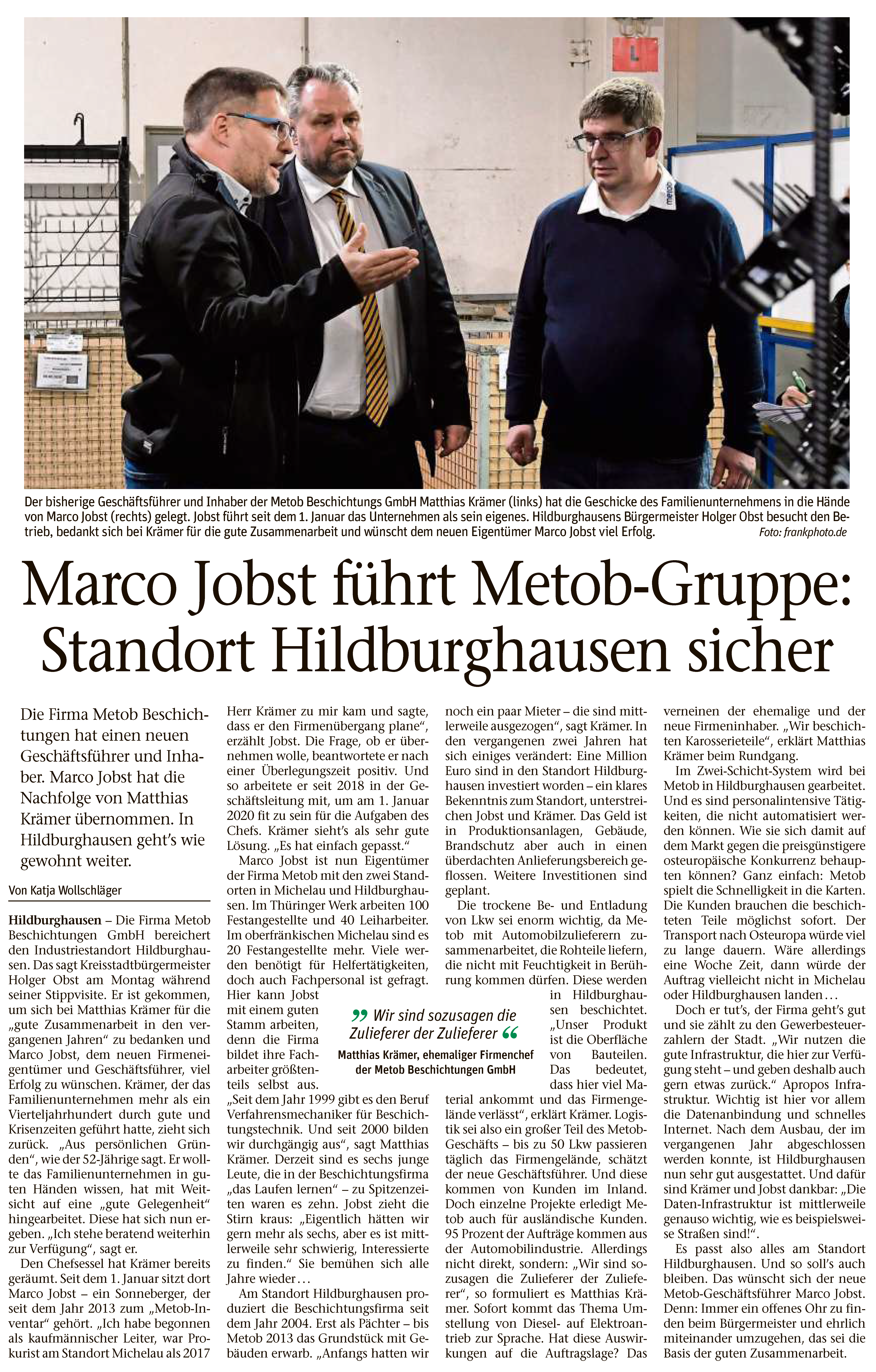 Freies Wort berichtete in seiner Ausgabe vom 12.02.2020 über den Eigentümerwechsel, über Metob im Allgemeinen und unseren Standort Hildburghausen im Speziellen.Read More