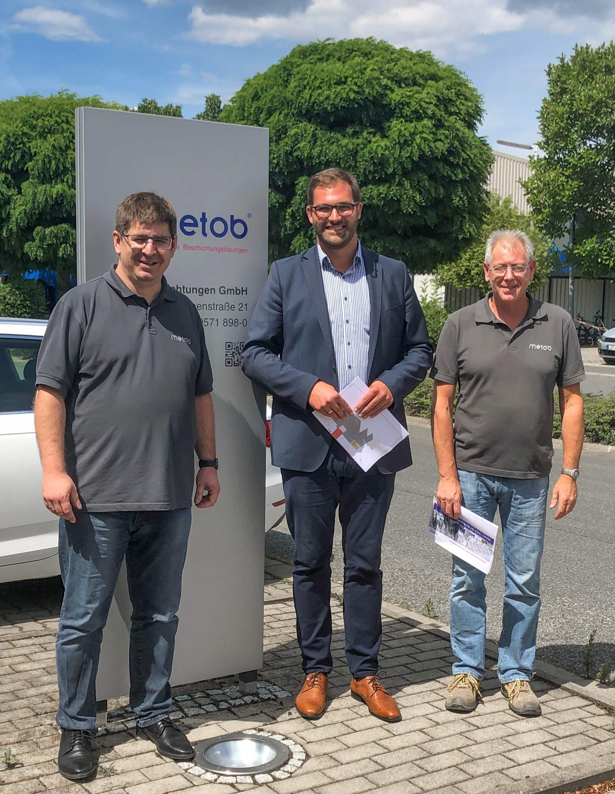 Am 14.07.2020 konnten Herr Bernd Kupfer, Fertigungsleiter am Standort Michelau sowie Herr Marco Jobst, Geschäftsführer und neuer Inhaber der Metob Beschichtungen GmbH den neu gewählten Bürgermeister von Michelau, Dirk Rosenbauer, bei der Metob Beschichtungen begrüßen. Beide Seiten freuen sich über einen persönlichen Neuanfang in der Zusammenarbeit zwischen der Gemeinde Michelau und der Metob-Gruppe. Als Zeichen...Read More